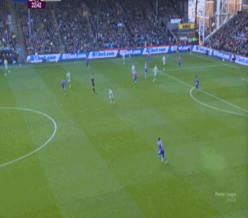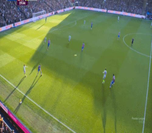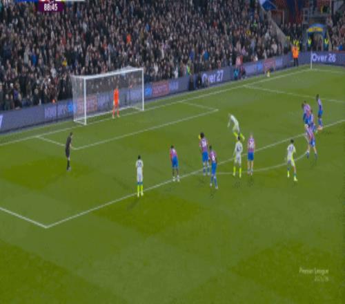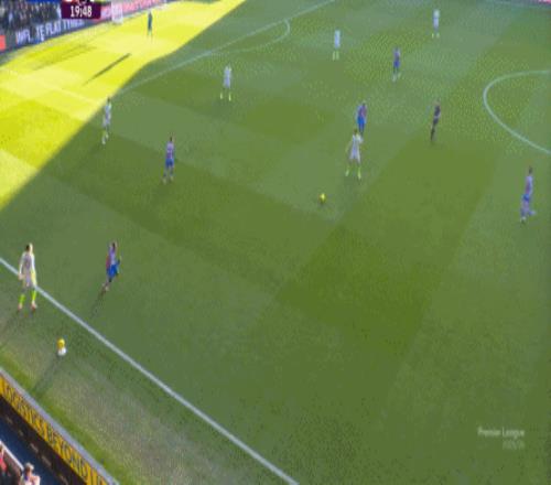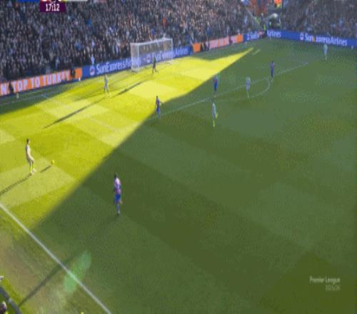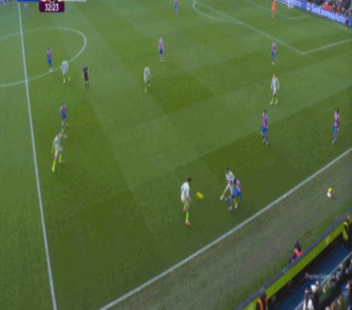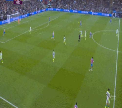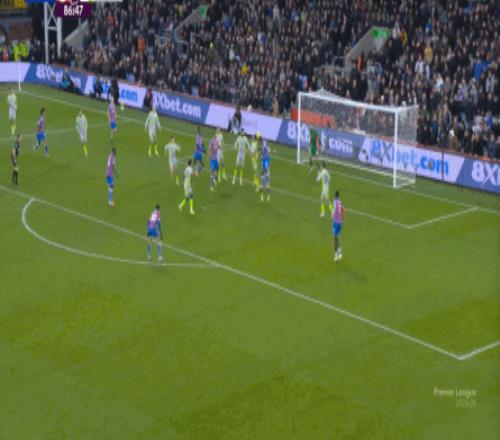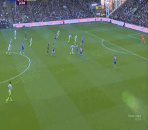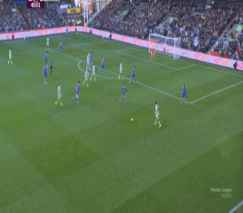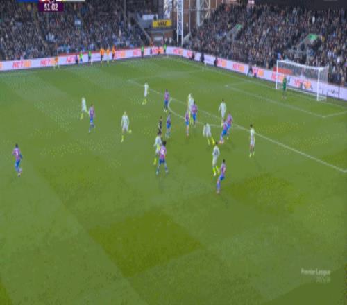 不过,人还在,精力不可能和上赛季类似,所以哪怕在主场,水晶宫依然保守应对,直至第10分钟,采用连续争高球的方式打进了禁区: