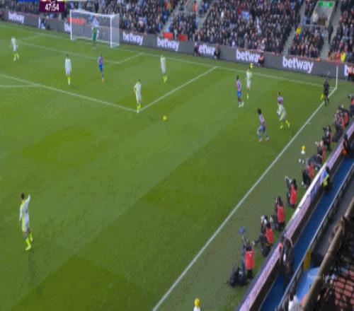 这一丢球,让主场作战的水晶宫难以接受,所以在这之后,他们试图打出反制,但成型的两次不同的进攻,还是迎来了相同的结果: