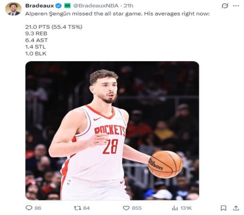 1月29日,布莱德-麦克马洪又提到火箭与扬尼斯的交易流言:我听说火箭根本不会去报价扬尼斯,虽然没有人说这是确切的消息,但我已经多次听到这样的声音。